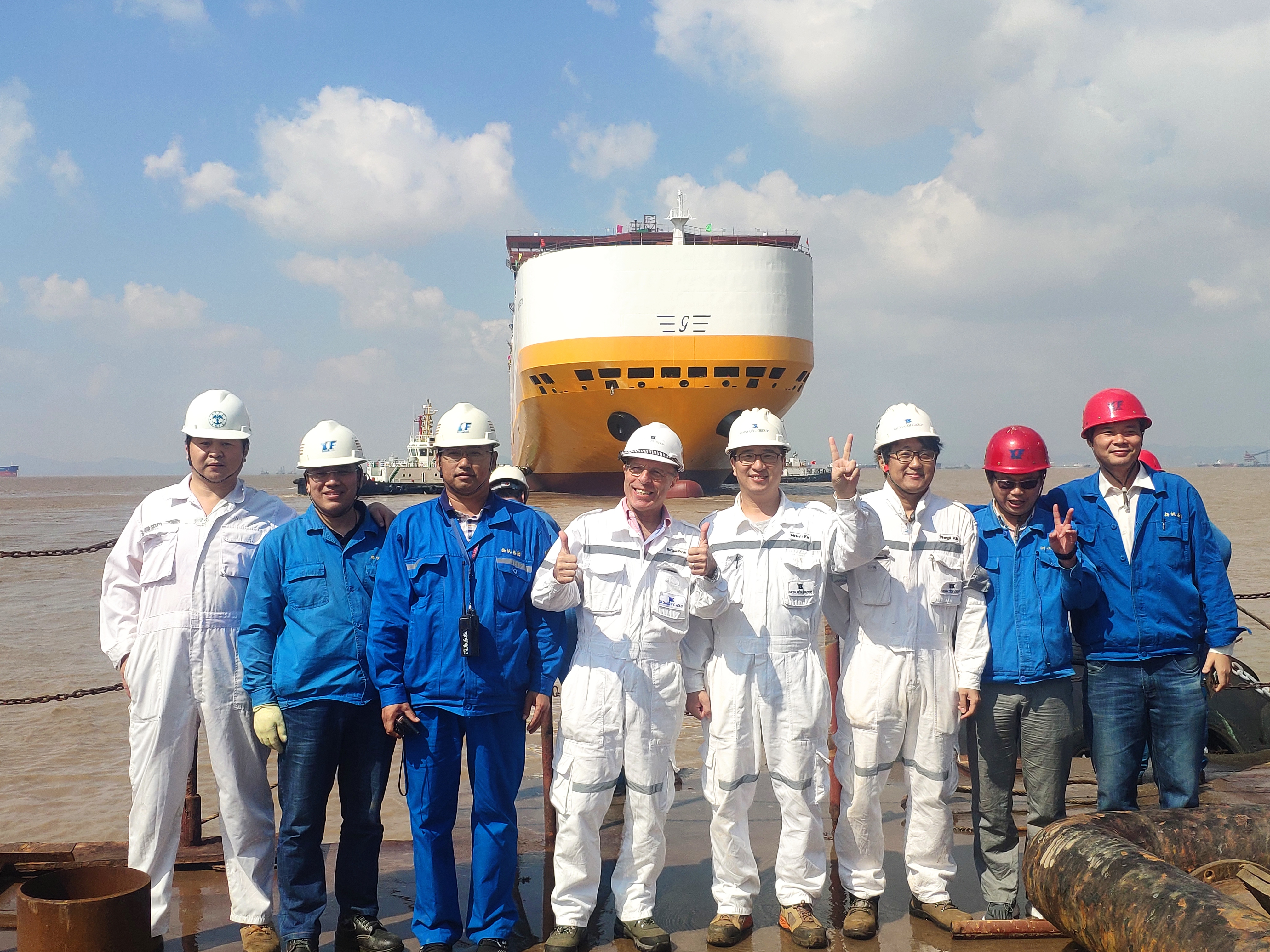 2019年10月19日上午,揚帆集團下屬浙江東海岸船業(yè)有限公司一艘7800PCTC系列汽車滾裝船順利下水,出塢狀態(tài)完整性超越已交付的兩艘系列船。