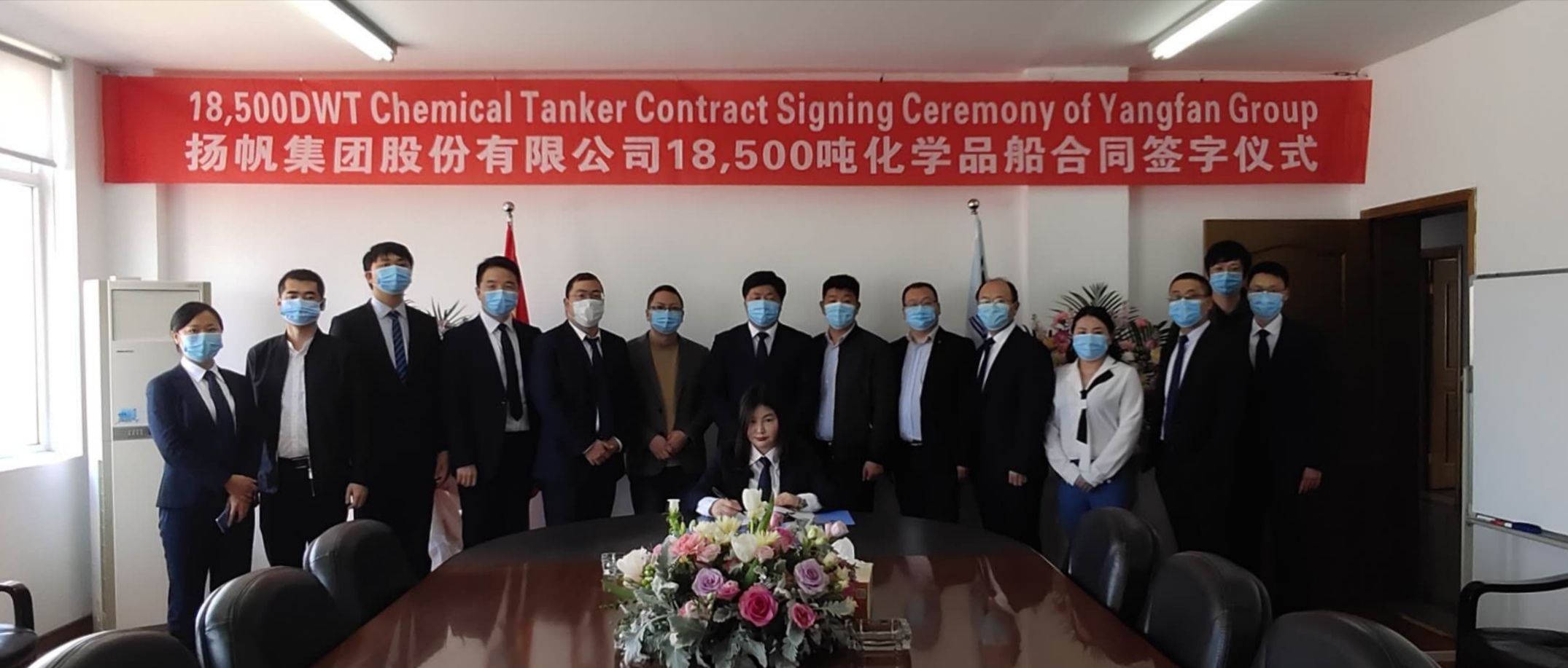 2020年4月9日,揚帆集團與一家國外船東簽署一艘18500DWT化學品船建造合同。該船型長164.34米、寬23米、設(shè)計吃水9.55米。