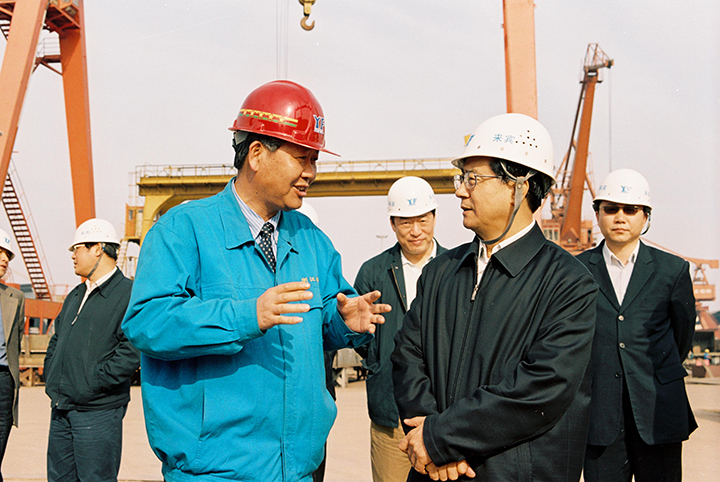 2007年4月12日,浙江省委書記趙洪祝(前右一),對(duì)揚(yáng)帆集團(tuán)的跨越發(fā)展成績(jī)表示肯定,并指出,作為舟山臨港工業(yè)的一個(gè)亮點(diǎn),揚(yáng)帆集團(tuán)應(yīng)該繼續(xù)保持目前的發(fā)展勢(shì)頭以及在國(guó)內(nèi)外市場(chǎng)的良好聲譽(yù)和信譽(yù)。